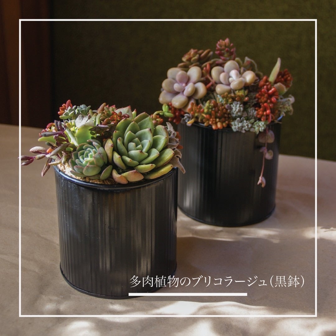 多肉植物のブリコラージュ(黒鉢)